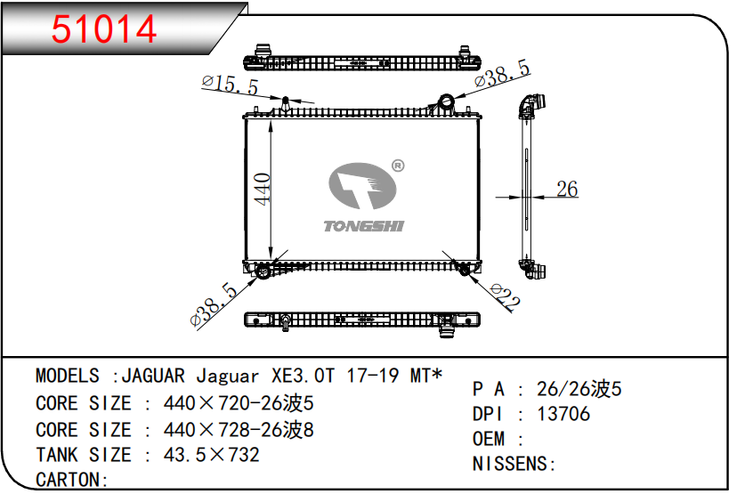 适用于FREIGHTLINER CASCADIA 125/ 113 L6 12.8L 12-13 AT散热器