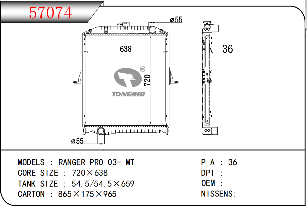 适用于FREIGHTLINER CASCADIA 125/ 113 L6 12.8L 12-13 AT散热器