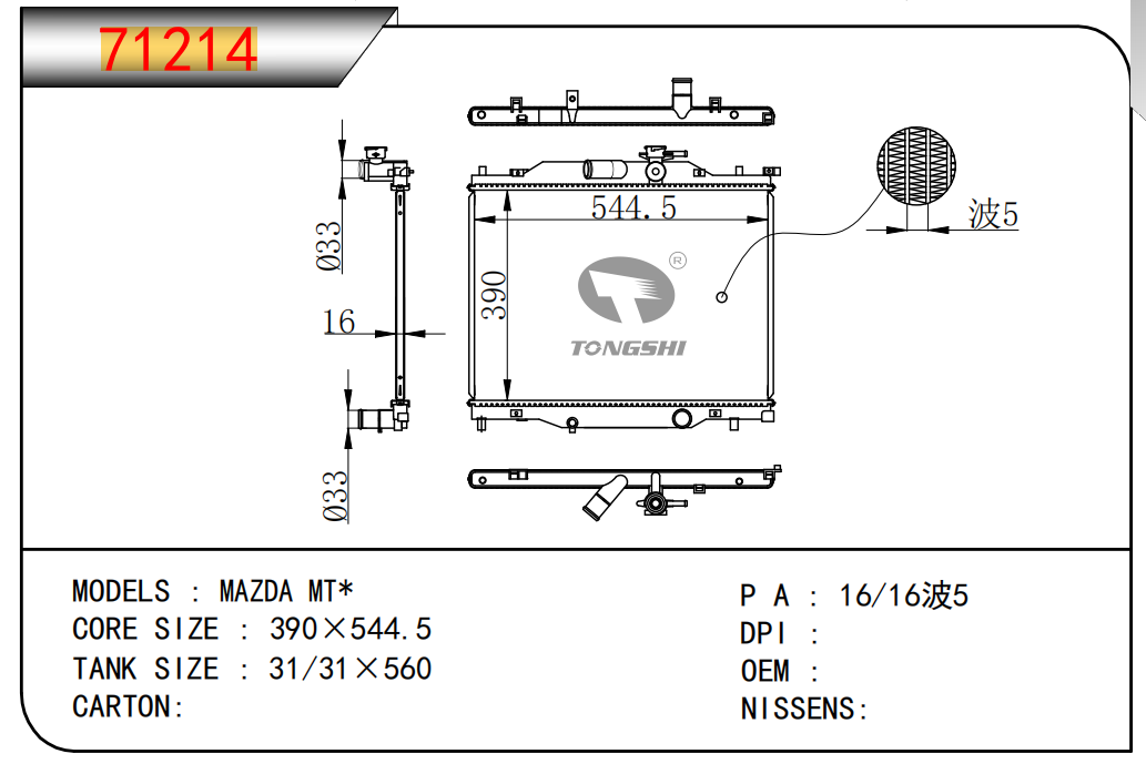 适用于沃尔沃V40 1.9TD D4192T 95- MT散热器