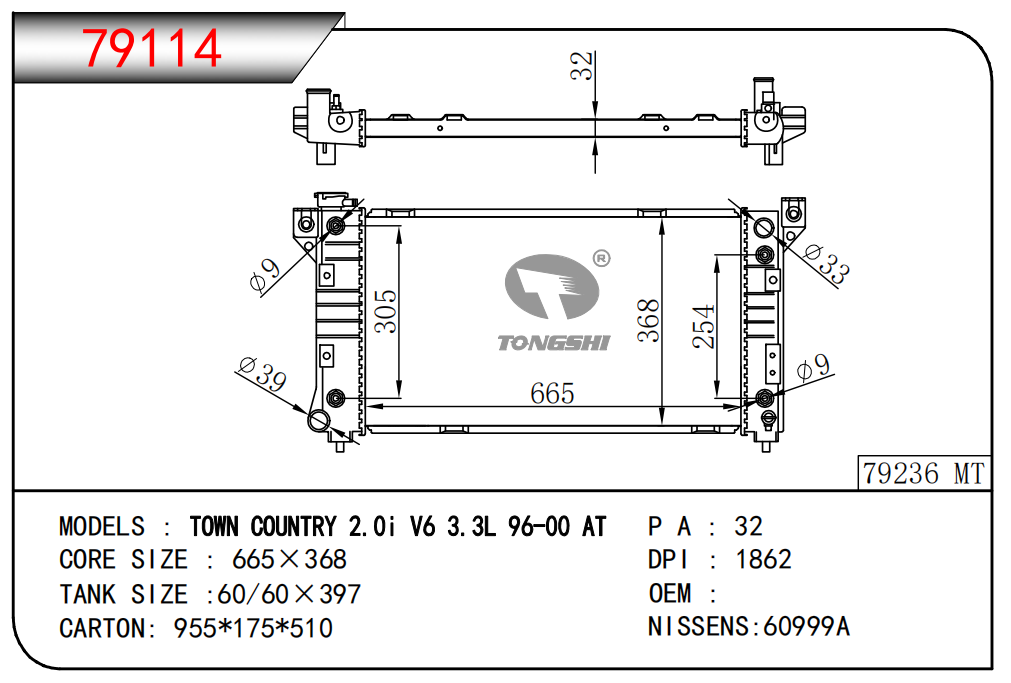 适用于沃尔沃V40 1.9TD D4192T 95- MT散热器
