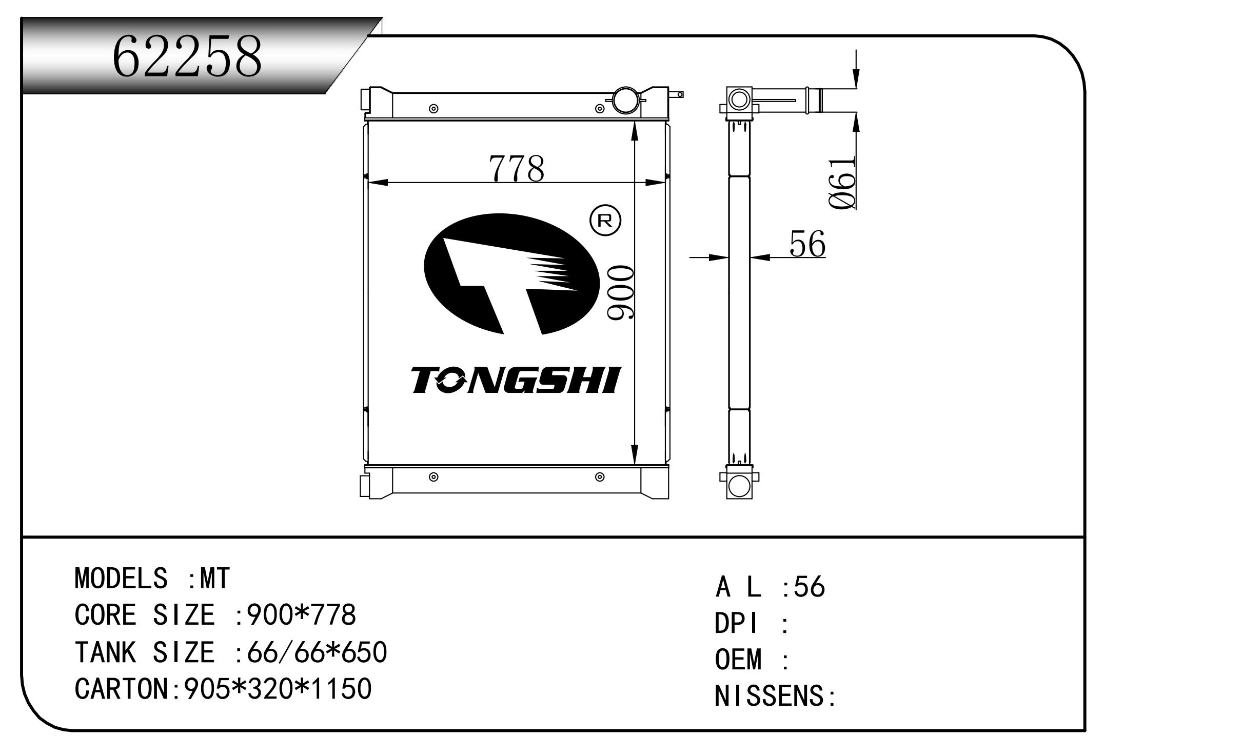 适用于沃尔沃V40 1.9TD D4192T 95- MT散热器