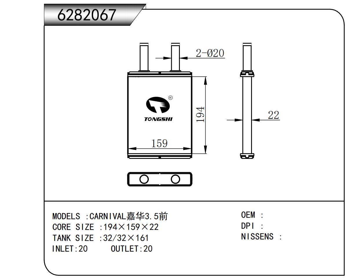 适用于沃尔沃V40 1.9TD D4192T 95- MT散热器