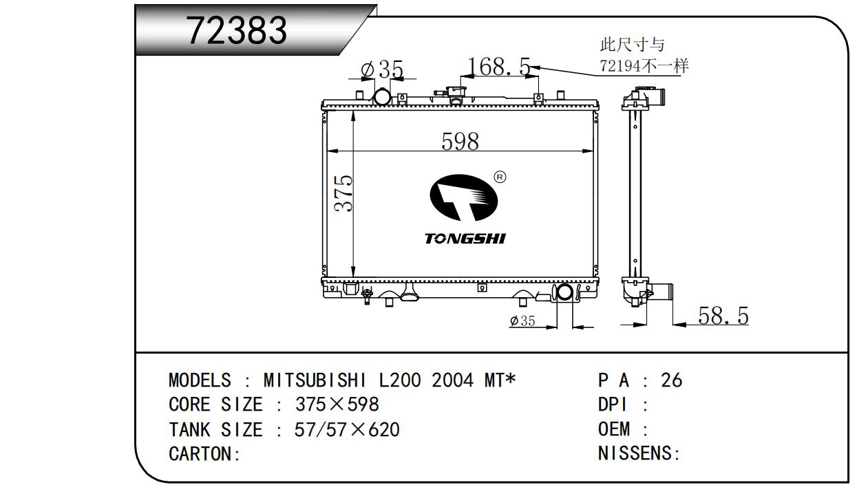 适用于奇瑞瑞虎(新款) MT散热器