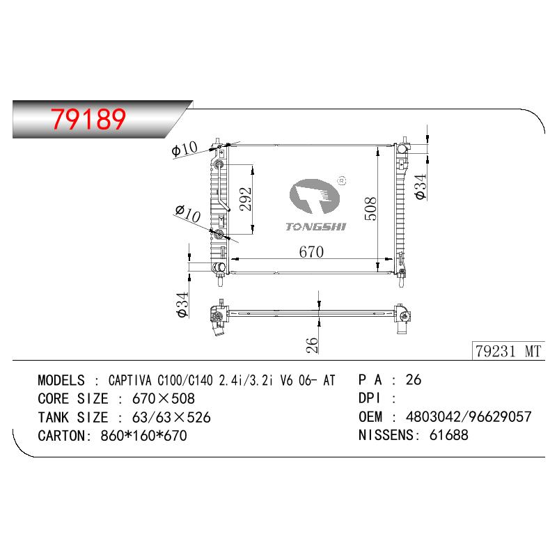 适用于奇瑞瑞虎(新款) MT散热器