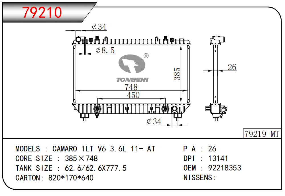适用于奇瑞瑞虎(新款) MT散热器
