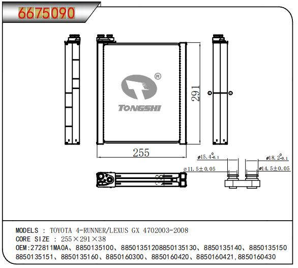 适用于 丰田 福瑞纳 /雷克萨斯 GX 4702003-2008 蒸发器