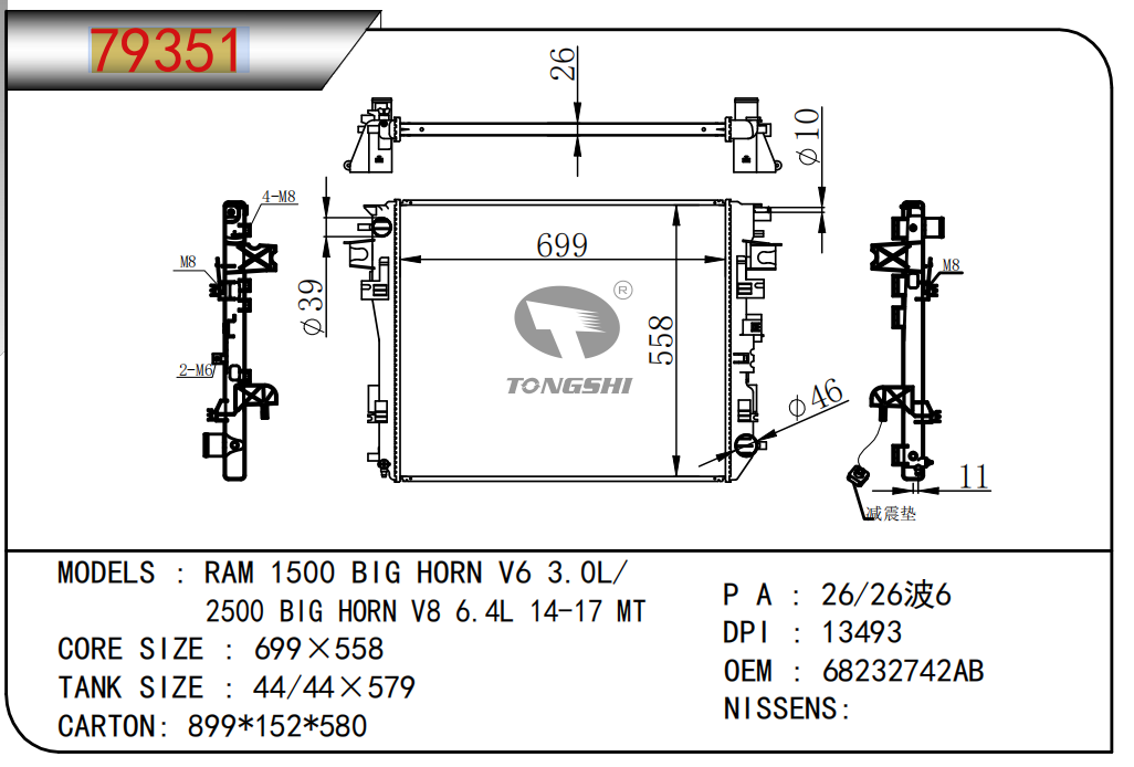 适用于FREIGHTLINER CASCADIA 125/ 113 L6 12.8L 12-13 AT散热器