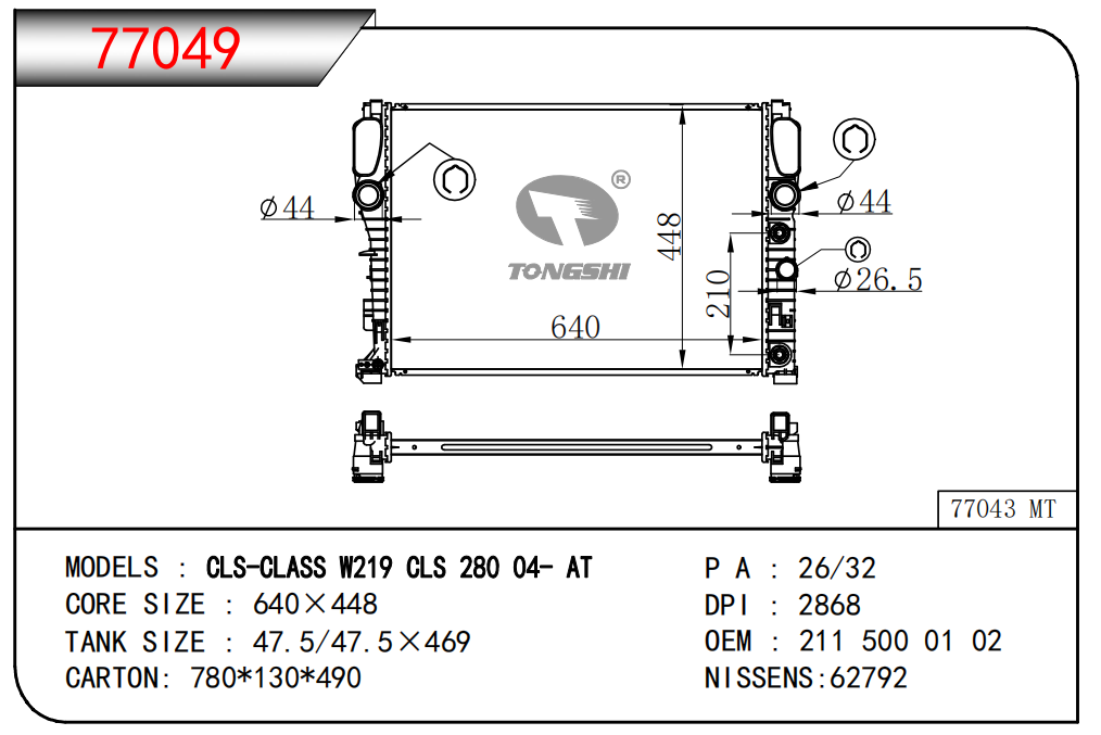 适用于奇瑞瑞虎(新款) MT散热器