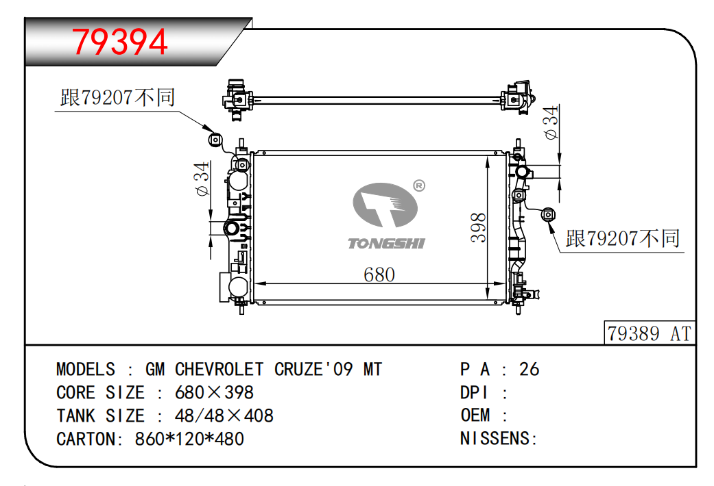适用于奇瑞瑞虎(新款) MT散热器