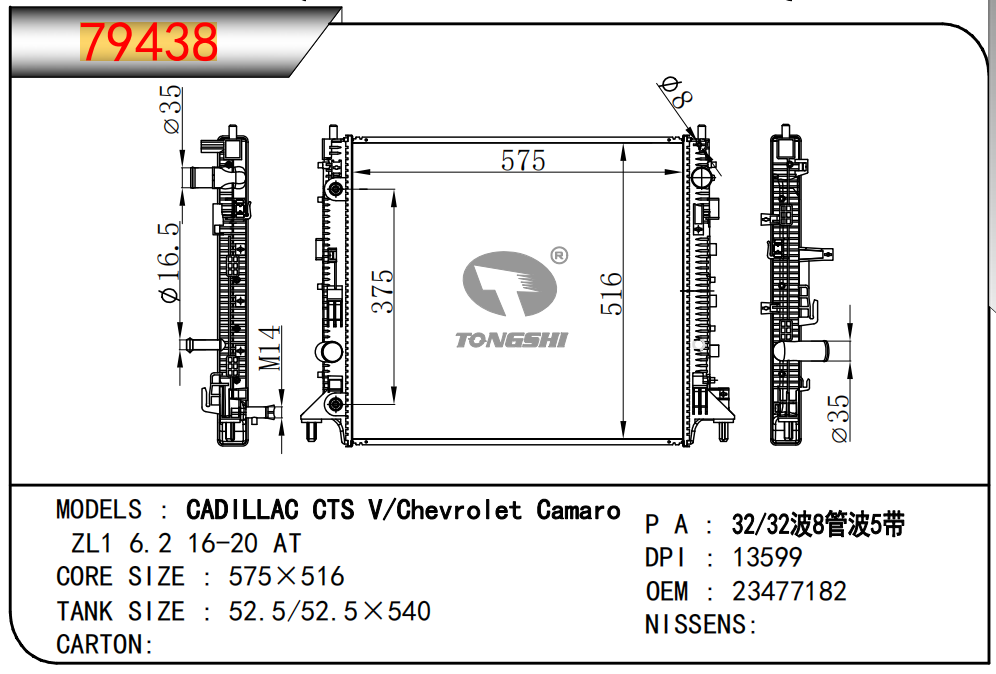 适用于FREIGHTLINER CASCADIA 125/ 113 L6 12.8L 12-13 AT散热器