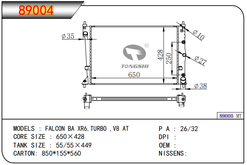 适用于沃尔沃V40 1.9TD D4192T 95- MT散热器