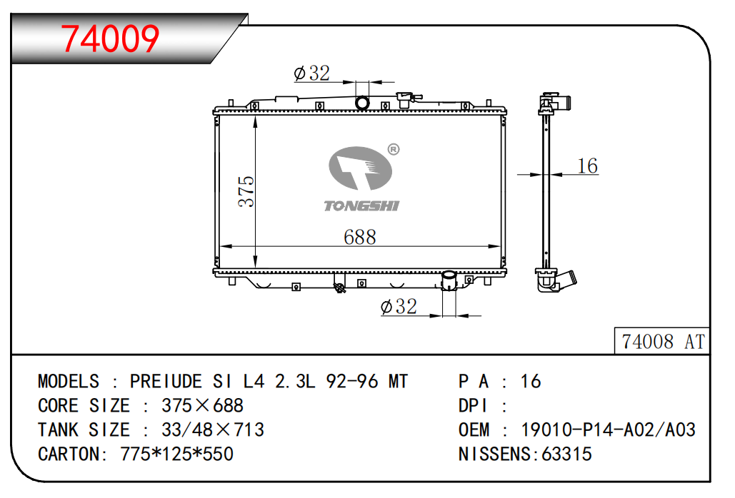 适用于沃尔沃V40 1.9TD D4192T 95- MT散热器