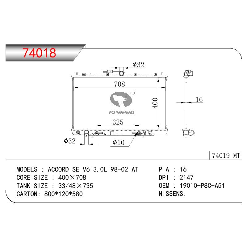 适用于宝马E30 320 i 82-93 AT散热器