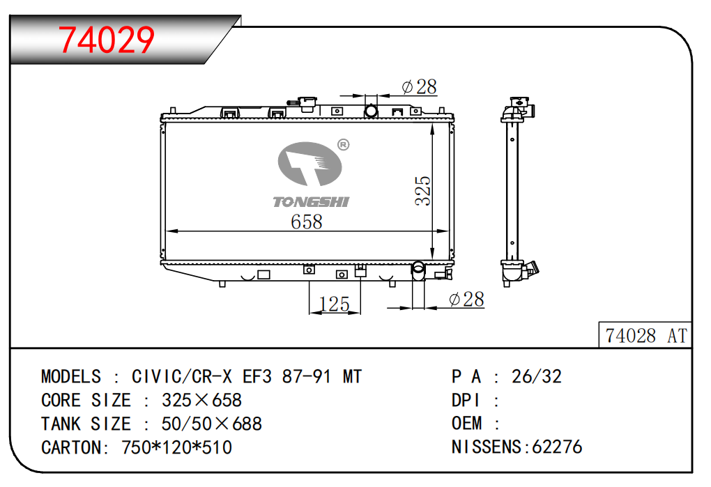 适用于沃尔沃V40 1.9TD D4192T 95- MT散热器