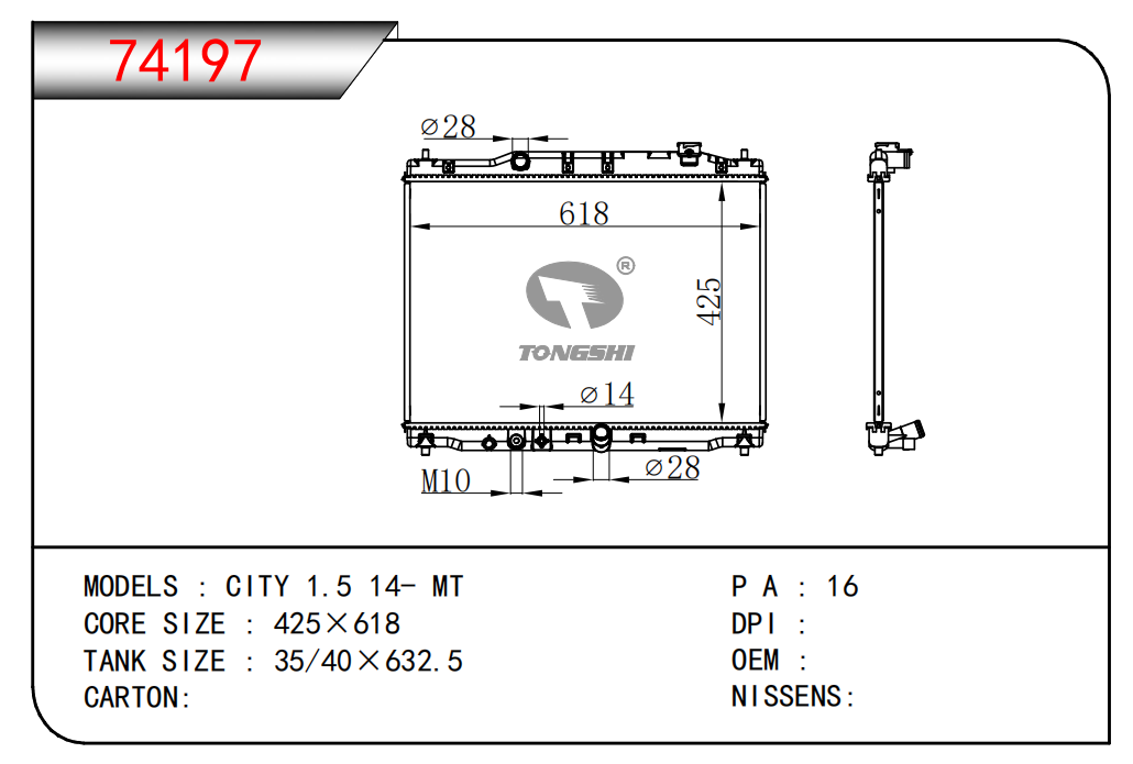 适用于沃尔沃V40 1.9TD D4192T 95- MT散热器