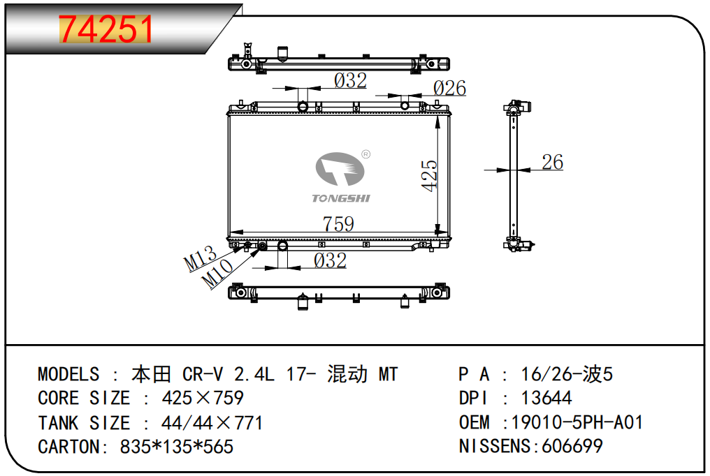 适用于FREIGHTLINER CASCADIA 125/ 113 L6 12.8L 12-13 AT散热器