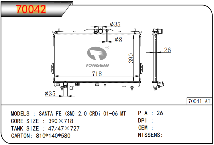 适用于沃尔沃V40 1.9TD D4192T 95- MT散热器