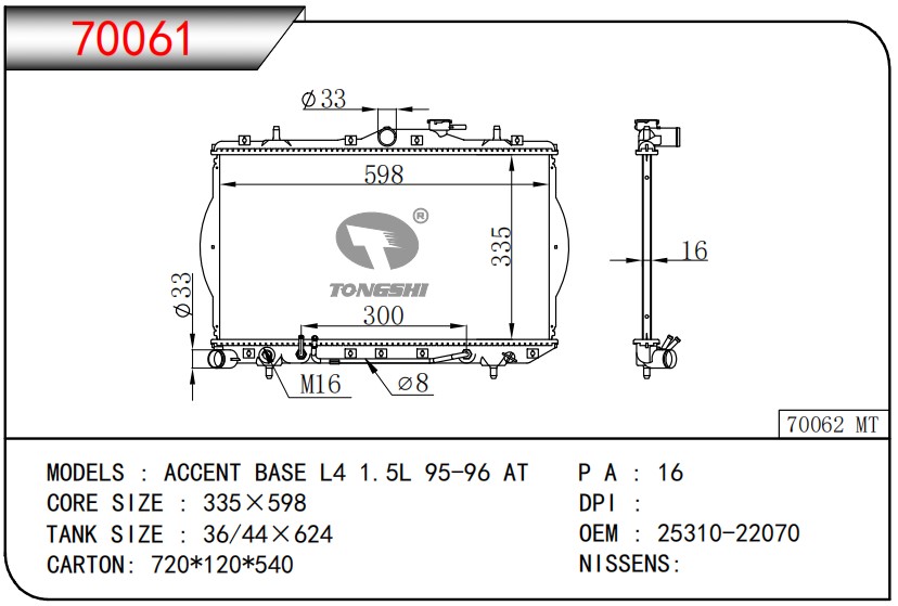 适用于沃尔沃V40 1.9TD D4192T 95- MT散热器