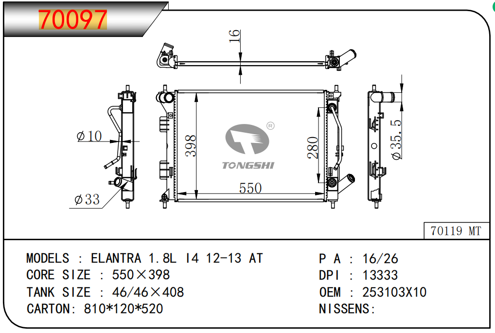 适用于FREIGHTLINER CASCADIA 125/ 113 L6 12.8L 12-13 AT散热器