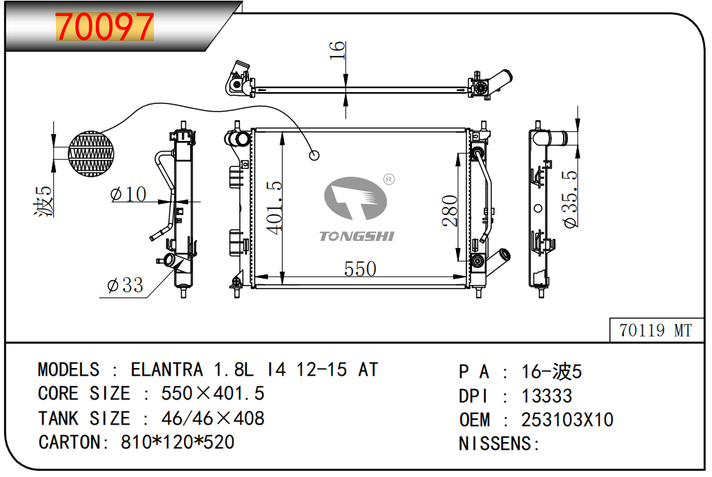 适用于沃尔沃V40 1.9TD D4192T 95- MT散热器