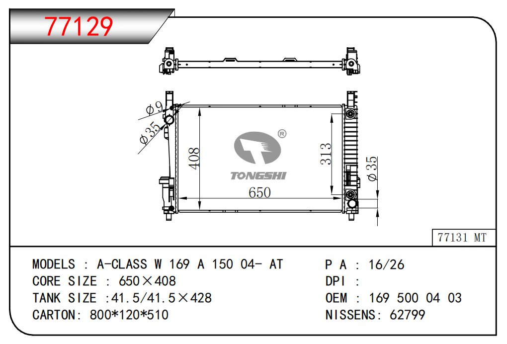 适用于沃尔沃V40 1.9TD D4192T 95- MT散热器