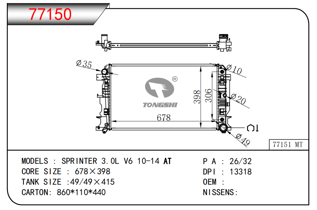 适用于宝马E30 320 i 82-93 AT散热器