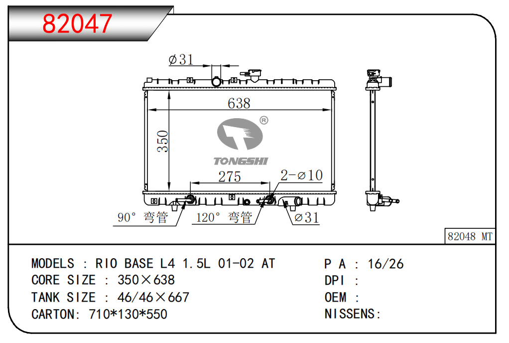 适用于宝马E30 320 i 82-93 AT散热器