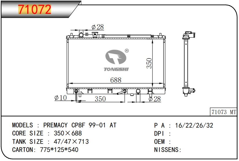 适用于沃尔沃V40 1.9TD D4192T 95- MT散热器