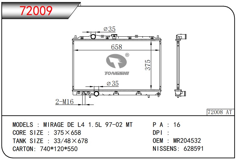 适用于沃尔沃V40 1.9TD D4192T 95- MT散热器