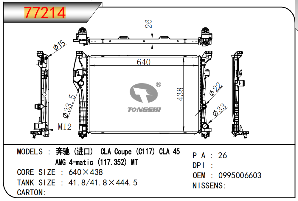 适用于FREIGHTLINER CASCADIA 125/ 113 L6 12.8L 12-13 AT散热器