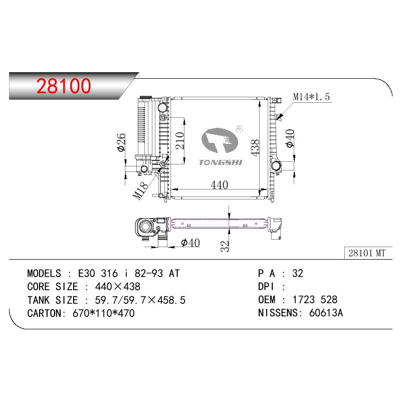 适用于宝马 E30 316 I散热器  OEM:1719136/1719264/1723528/1723898/17111719136/17111719264/17111723528/17111723898/1723 528