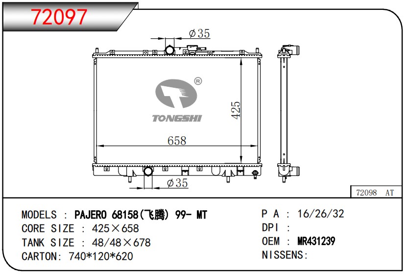 适用于沃尔沃V40 1.9TD D4192T 95- MT散热器