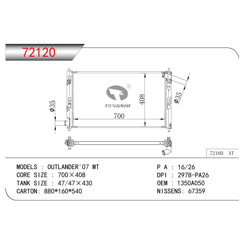 适用于FREIGHTLINER CASCADIA 125/ 113 L6 12.8L 12-13 AT散热器