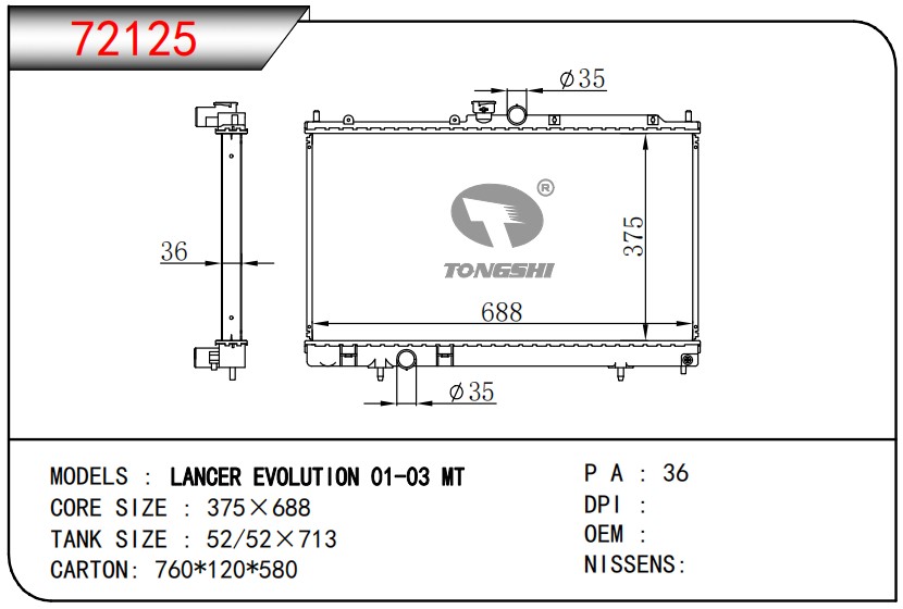 适用于沃尔沃V40 1.9TD D4192T 95- MT散热器