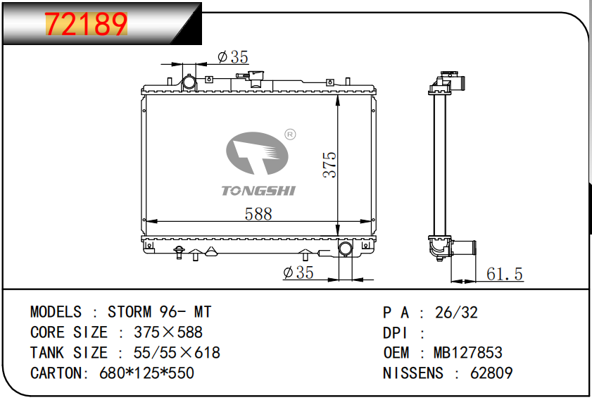 适用于沃尔沃V40 1.9TD D4192T 95- MT散热器