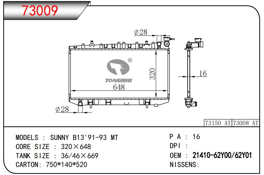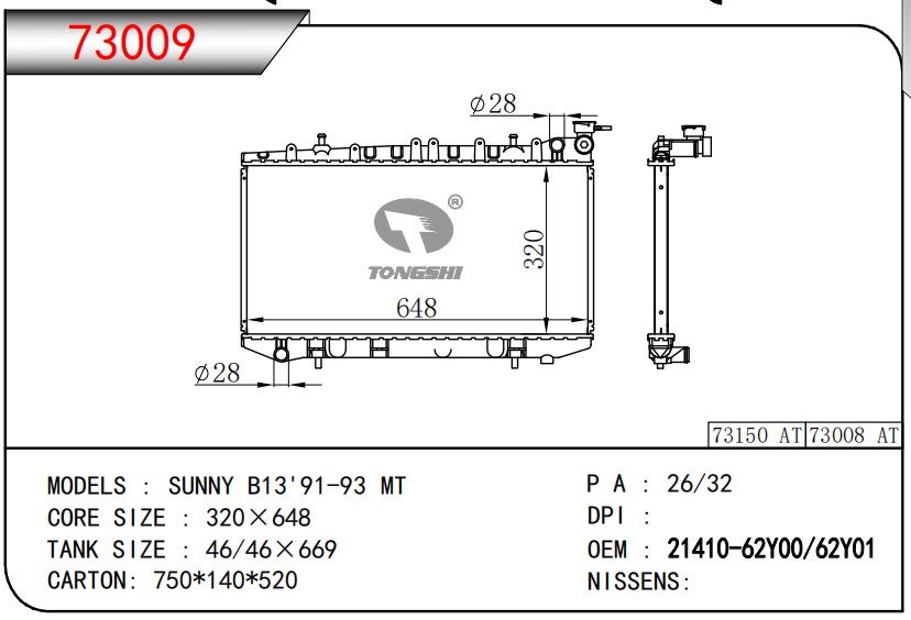 适用于沃尔沃V40 1.9TD D4192T 95- MT散热器