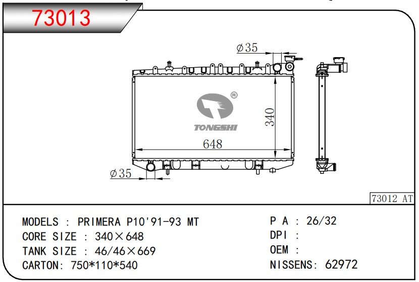 适用于FREIGHTLINER CASCADIA 125/ 113 L6 12.8L 12-13 AT散热器