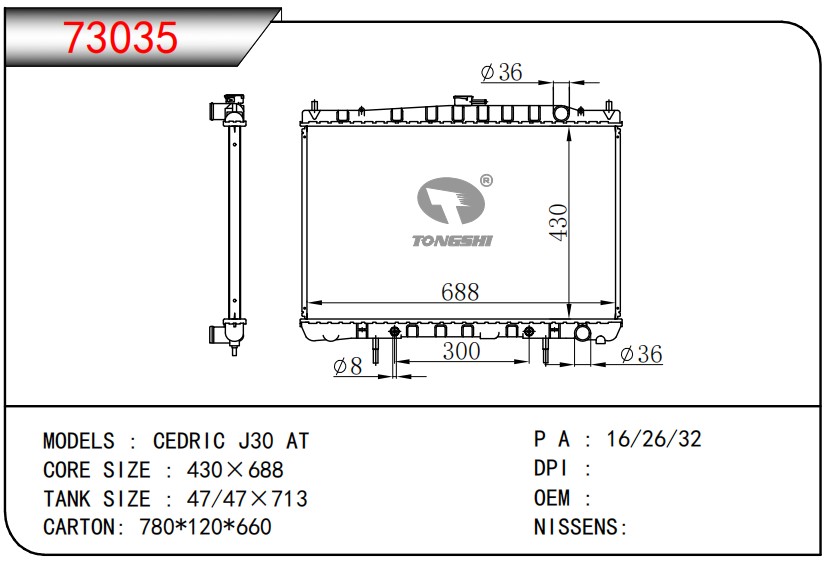 适用于宝马E30 320 i 82-93 AT散热器