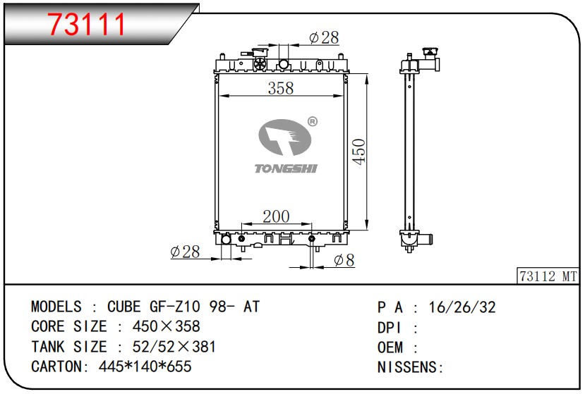 适用于宝马E30 320 i 82-93 AT散热器