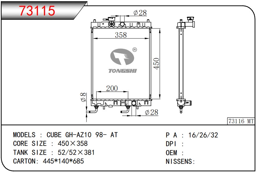 适用于宝马E30 320 i 82-93 AT散热器