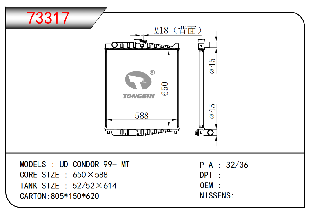 适用于沃尔沃V40 1.9TD D4192T 95- MT散热器