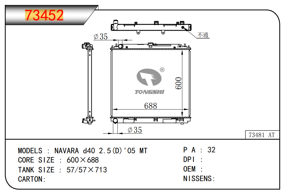 适用于沃尔沃V40 1.9TD D4192T 95- MT散热器