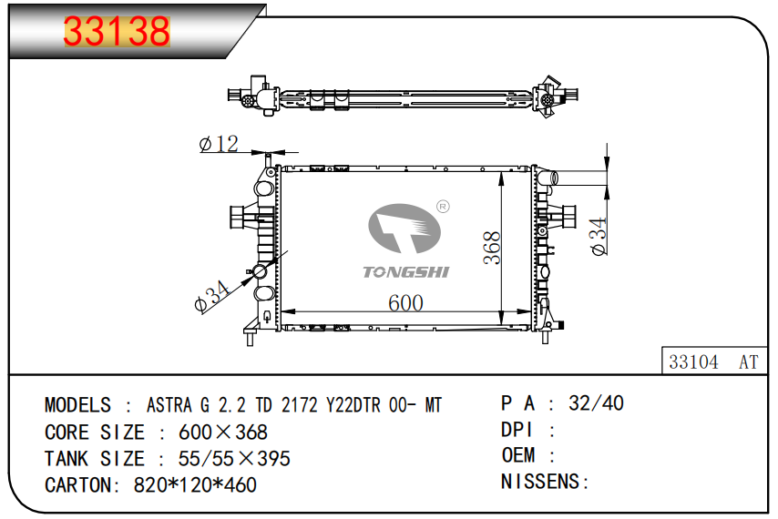适用于沃尔沃V40 1.9TD D4192T 95- MT散热器
