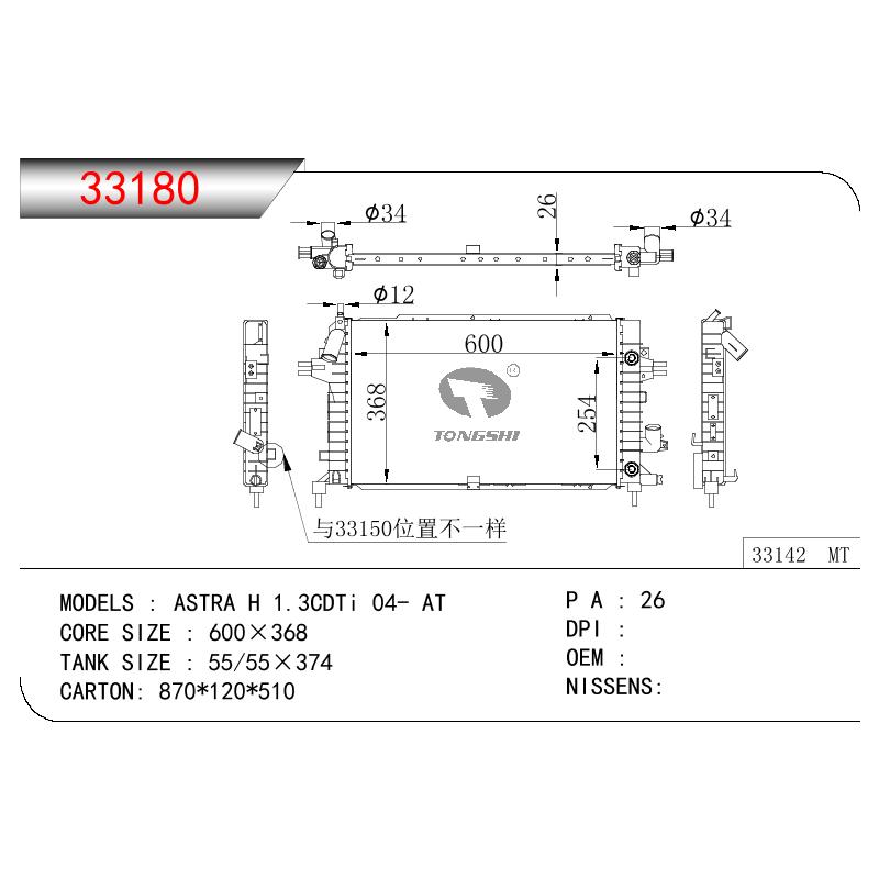 适用于沃尔沃V40 1.9TD D4192T 95- MT散热器