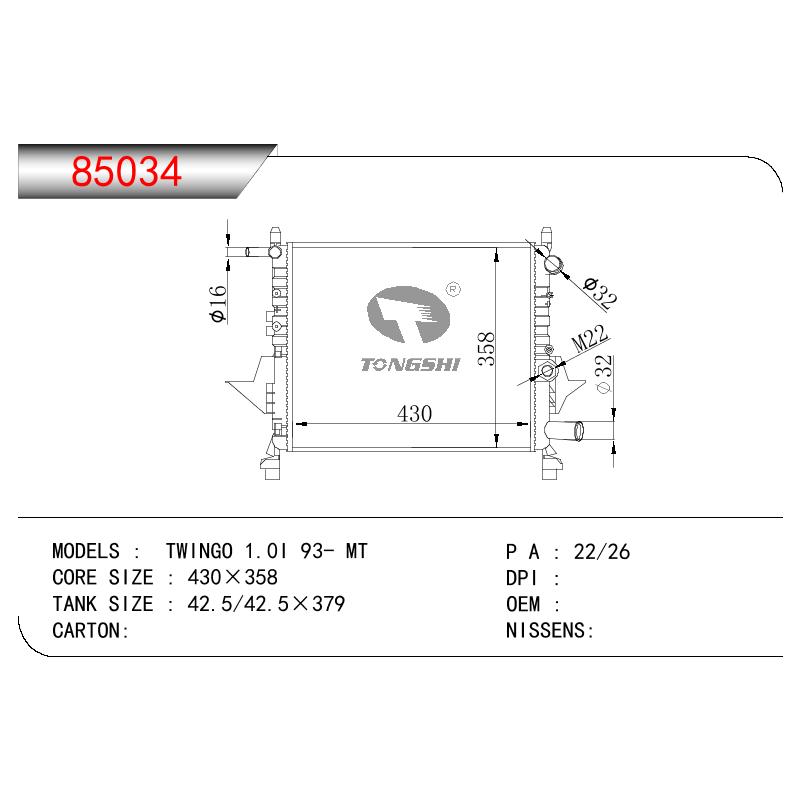 适用于宝马E30 320 i 82-93 AT散热器