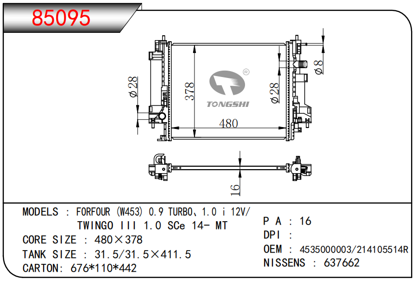 适用于沃尔沃V40 1.9TD D4192T 95- MT散热器