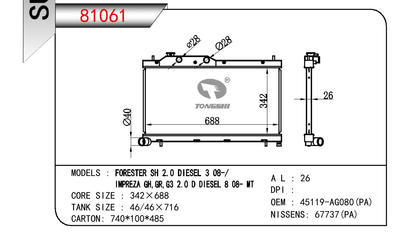 适用于SUBARU FORESTER SH 2.0 DIESEL 3 08-/IMPREZA GH GR G3 2.0 D DIESEL 8 OEM:45119-AG080(PA)/45119AG080(PA)