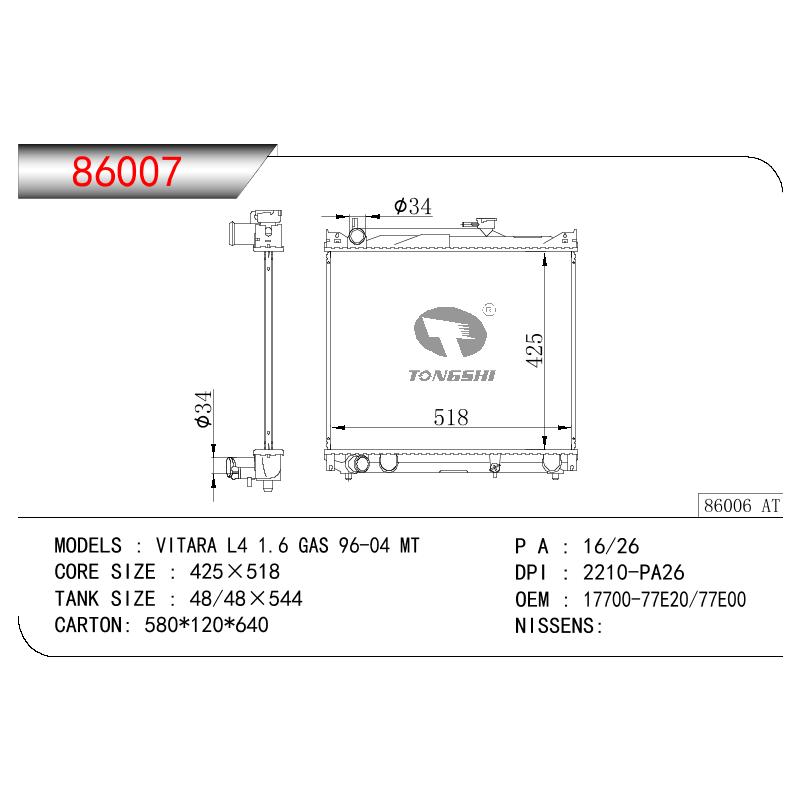适用于奇瑞瑞虎(新款) MT散热器