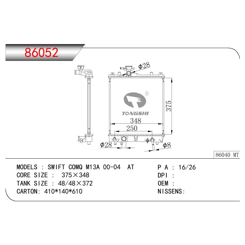 适用于沃尔沃V40 1.9TD D4192T 95- MT散热器
