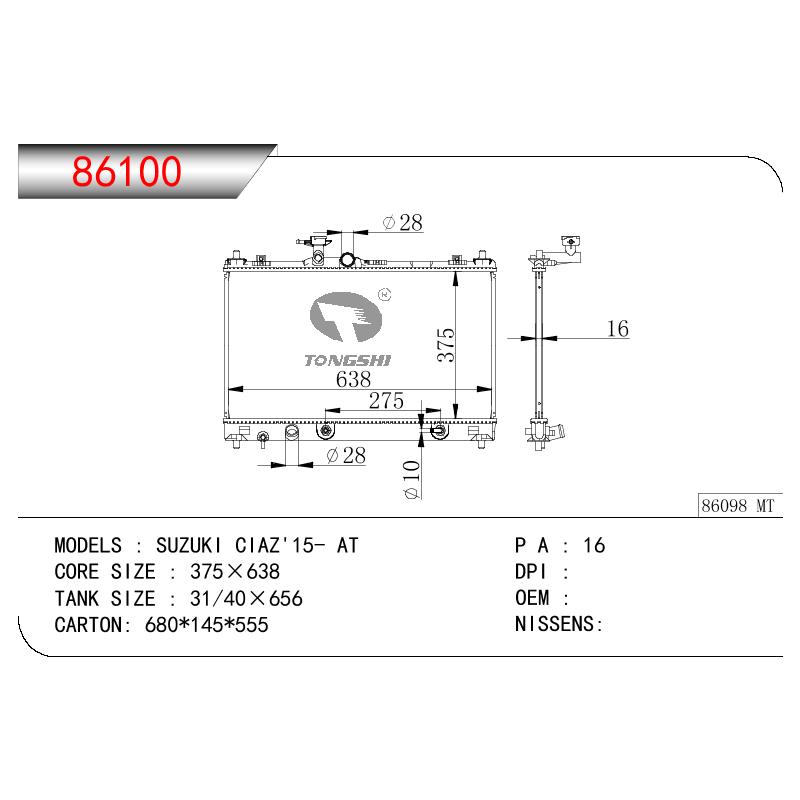 适用于宝马E30 320 i 82-93 AT散热器